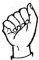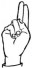 На ћирилици написано МИЉАНА КОВАЧЕВ састоји се из 13 слова [?]. Исписано ћириличном једноручном азбуком за глувонеме: